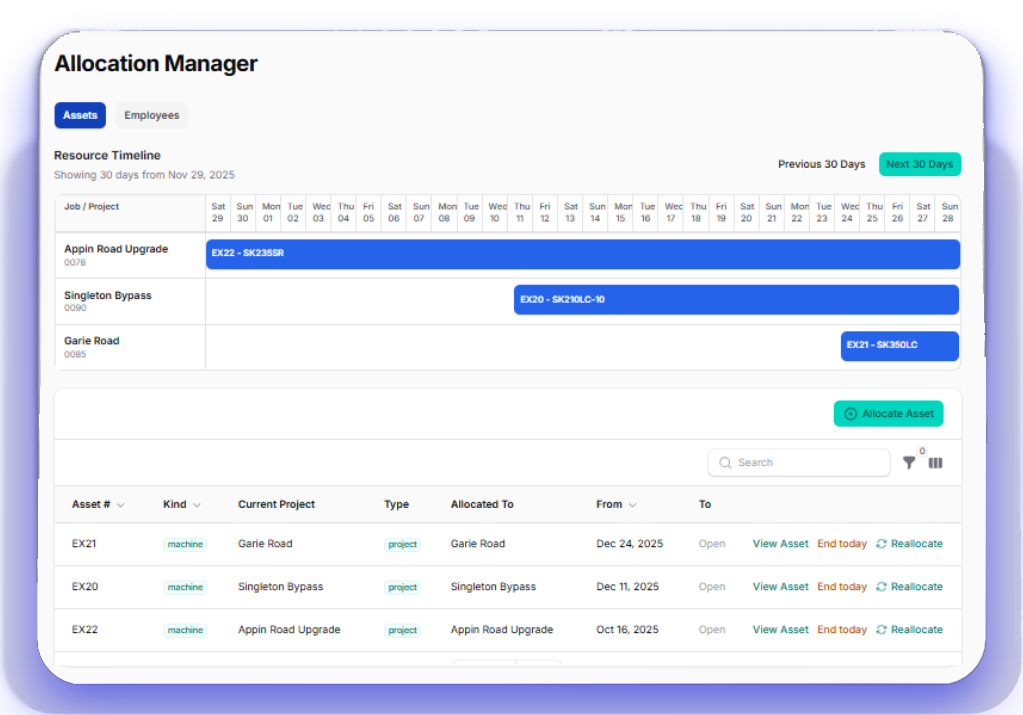 Stop juggling multiple apps for Timesheets, Allocations, and Asset Management. We bring your entire operation together into one unified system.