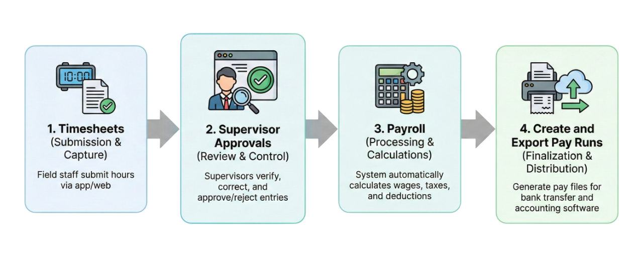 Automated rate sets roll straight into payroll-ready exports so finance can pay accurately without re-keying data.
